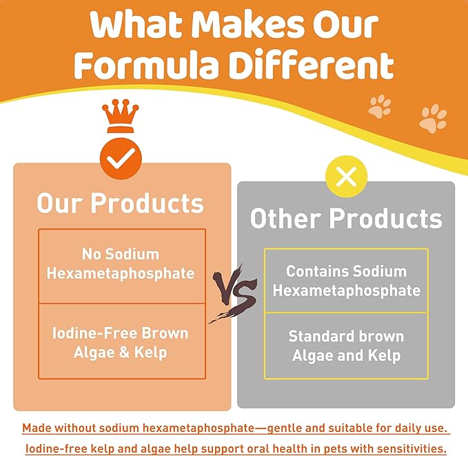 - Senior & Sensitive Pet Friendly: Made without harsh ingredients like sodium hexametaphosphate, and using iodine-free brown algae and kelp, this gentle formula is ideal for senior pets or those with special dietary sensitivities.