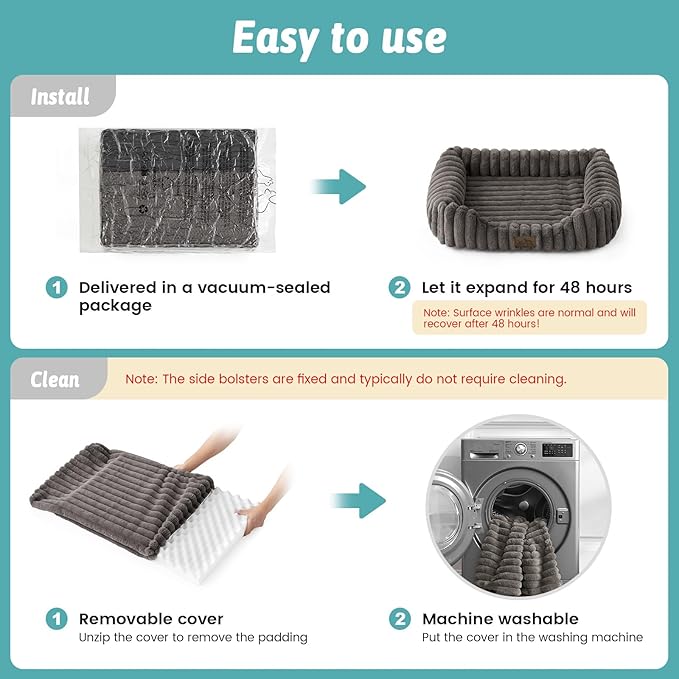 - Perfect Fit for All Pets: 3 sizes (S - L) with detailed dimensions. Before purchasing, please choose the right Bed for your pet according to its size and weight. Vacuum-packed delivery – just unzip and let fluff for 48 hours!
