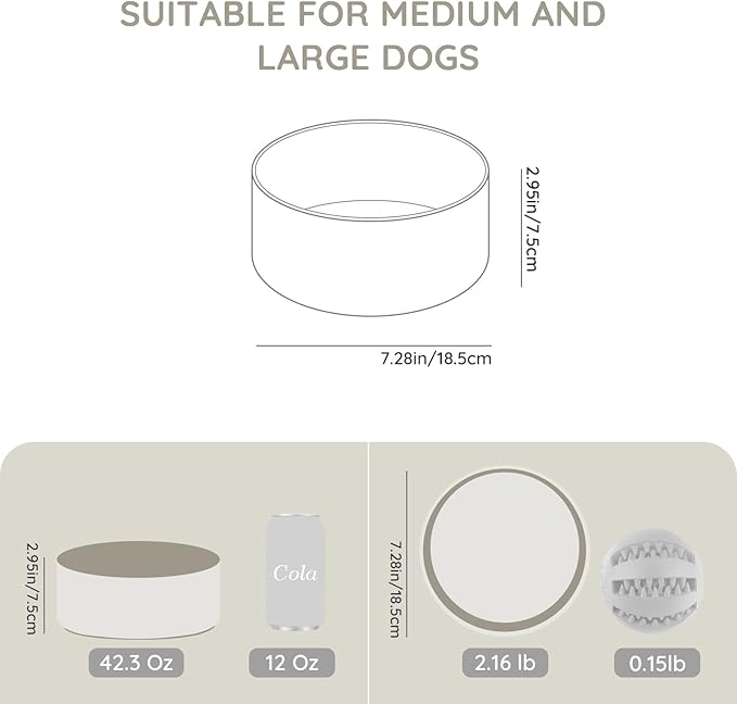 • Capacity AND Size: SPUNKYJUNKY dog bowl is available in 5.2 cups(42 Fluid Ounces) capacity, perfect for different breeds of small and medium-sized dogs
