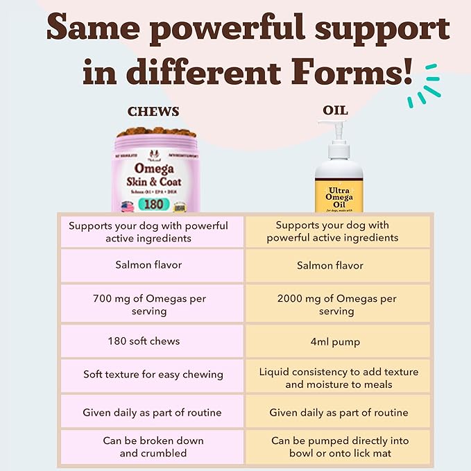 - SHINY COAT & ITCH RELIEF SUPPORT: Tired of scratching, shedding, and dull fur? These omega chews for dogs help soothe itchy skin, reduce dryness, and restore shine from the inside out. Whether your pup suffers from seasonal allergies, hot spots, or flaky skin, daily use supports a healthier coat and less discomfort so your dog can stay comfortable, glossy, and happy.