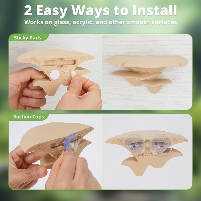 • 2 Ways to Install – These fake plants for reptiles easily stick to any smooth surface using suction cups or sticky pads, perfect for upgrading your snake tank accessories, axolotl tank accessories, and frog tank accessories.