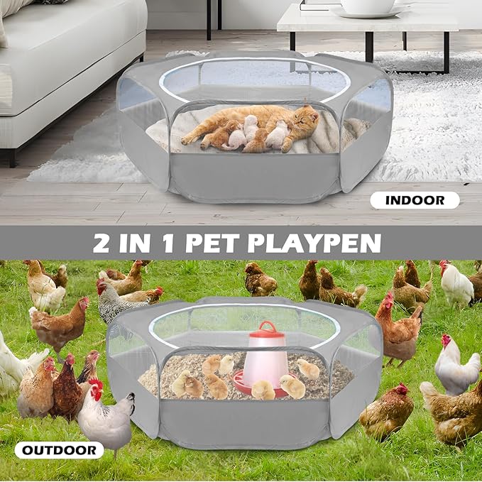 UWE Small Animal Playpen, Chicken Brooder Box with Cover Top, Portable Outdoor Exercise Pet Cage Tent, Waterproof Breathable Pet playpen Indoor for Chick Ktiien Bunny Hamster Guinea Pig, Grey