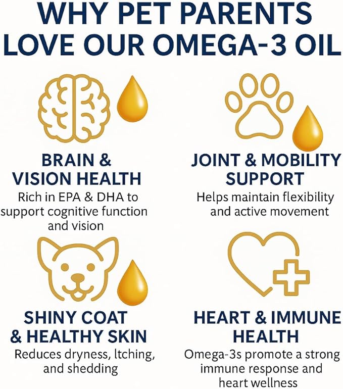 - PROMOTES SOFT, SHINY, AND HEALTHY COAT: With a powerful blend of omega-3 fatty acids, this fish oil for dogs helps with dryness, flaking, and brittle fur. It nourishes your pet from within, encouraging a healthier, softer coat and a more polished, well-groomed appearance.