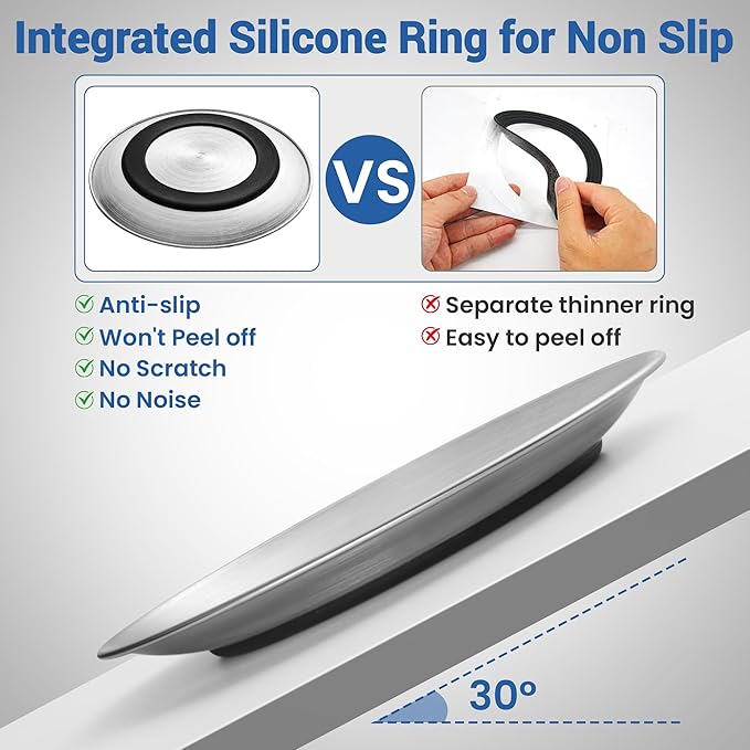 - 【Anti-slip and Firm Silicone Base】: Those stainless steel cat bowls are machine pressed with integrated silicone rings on the bottom to keep the cat food plate quiet in place without sliding while eating, reducing anoying noise, and keeping your floor unscratched.