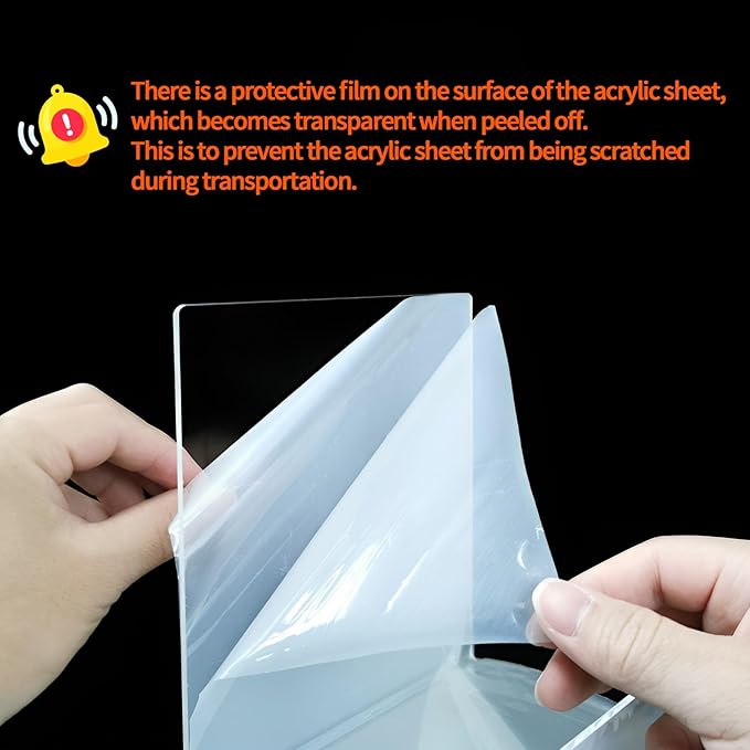 - Special Precautions Both sides of the acrylic sheet are covered with a protective film. Please remember to remove the protective film before use.