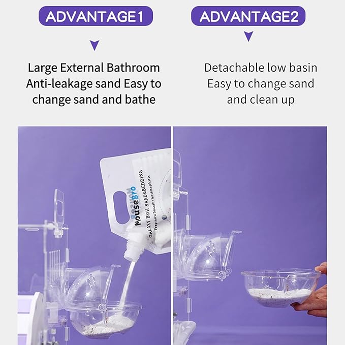 Large Acrylic Hamster Cage14.6x10.2x12.6in-Multi-Level Habitat for Dwarf/Syrian Hamsters-Mice (Ventilated Top-Removable Base) Expandable Small Animal Enclosure (Purple Hamster Cage, 14.6x10x12.6)