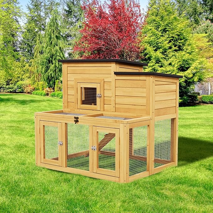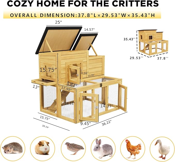 - Practical Asphalt Roof Design: With 2 openable asphalt roofs, this pet cage is waterproof, sunproof, and insulating for heat retention, keeping pets safe in all weather. The roofs have sturdy brackets to hold them open, making feeding, transferring pets, or checking the chicken nesting box super convenient—no more hassle with flimsy covers during daily care.