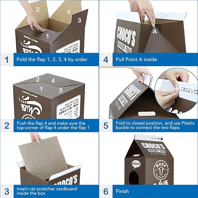 Cat Condo Scratcher Post Cardboard, Milk Box Shape Cat Scratching House Bed, Black Color