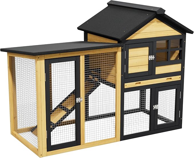 • Spacious 44.1"L×20"W×35.2"H Design:Ample room for 2-3 rabbits (as a rabbit hutch) or 3-4 guinea pigs—works great as a quail cage or small chicken run for poultry too.